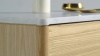 - Solid brass knobs and leveling feet; soft-closing hardware.